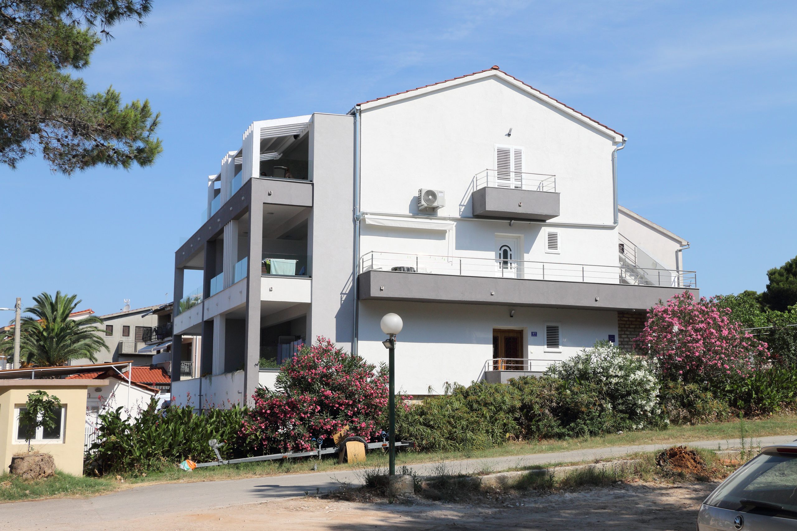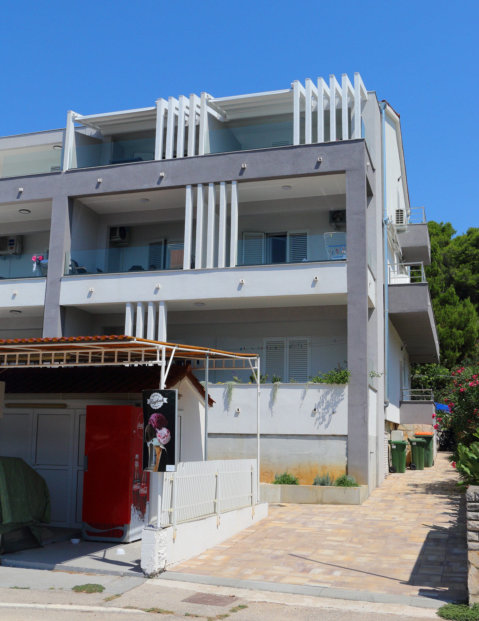 Apartments are in Kukljica, a village on the island of Ugljan, near the Zadar city. As the apartments are near “Zelena Punta” holiday resort, resort’s public beach is only 50 meters from the apartments. It is a partially cemented-rocky beach. If you prefer sandy beaches, you can go to beaches of Sabuša, Mala Sabuša or Kostanj which can be reached by a 20-minute walk.